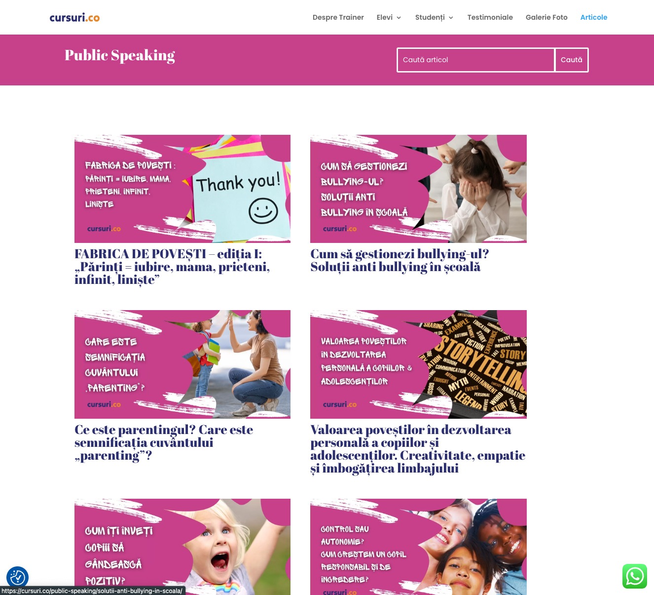 Ne-am concentrat pe o structură clară și ușor de navigat, punând accent pe ateliere și cursuri și pe modul în care acestea ajută participanții să își dezvolte abilitățile de comunicare și stima de sine.