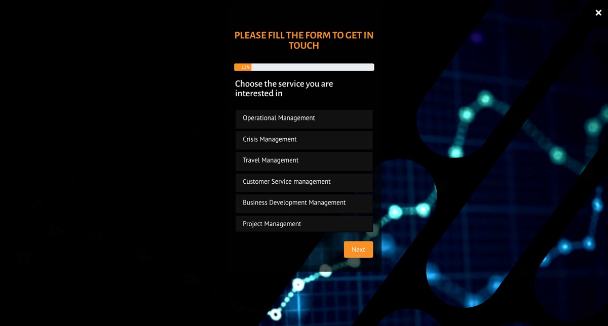 Am utilizat imagini relevante și o estetică minimalistă pentru a evidenția categoriile de servicii, precum management operațional, gestionarea crizelor și dezvoltarea afacerilor.